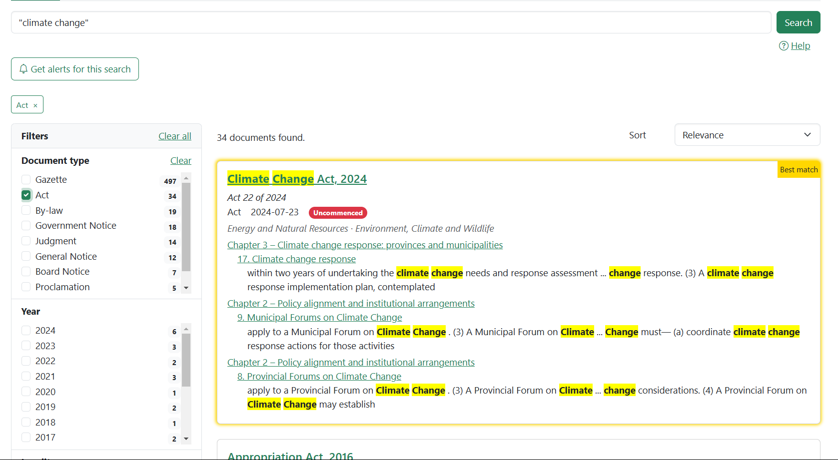Use **multiple filters** to refine your search. Let’s look for an **Act** from **2019**
